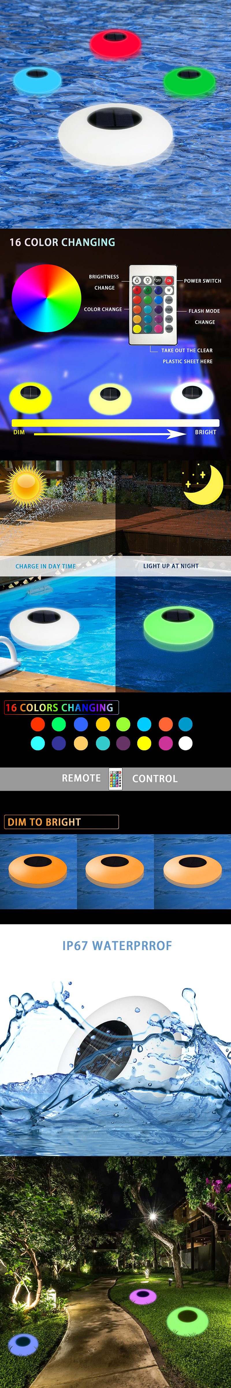 • Product description: Material: PE shell + ABS wick holder + solar silicon panel; Battery: 3.7V 2000mah; Power: 2.5W Continuous lighting time 6-12 hours Protection class IP67 Light source type LED Life 30000 (h)
