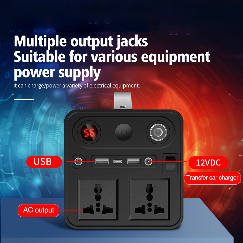 • Product description: Cell model Ternary lithium battery Battery capacity 85000mah/314.5wh Input charging power CC/CV 15V/6A AC inverter output 220V-50HZ 110V-60HZ DC output 9V-12V/10AMAX USB output 5V/2A QC3.0 PD Ch